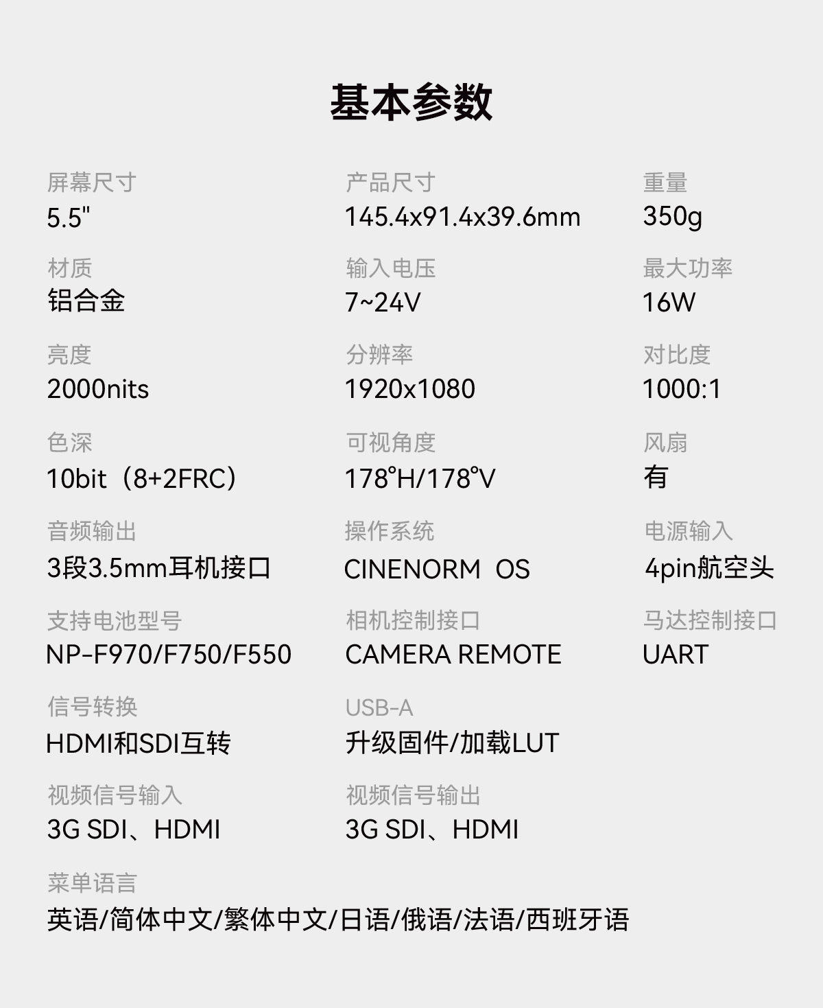 产品参数